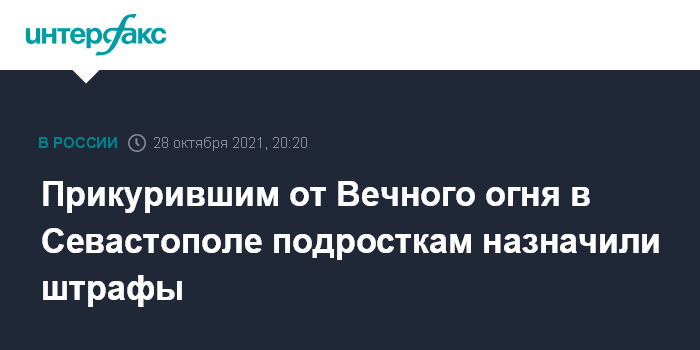 Москва. 28 октября. INTERFAX.RU - Ленинский райсуд Севастополя назначил штрафы по 5 тысяч рублей троим несовершеннолетним, которые прикурили от Вечного огня на мемориале павшим в годы Гражданской войны и выложили видео в соцсети.