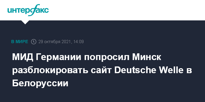 Москва. 29 октября. INTERFAX.RU - В МИД Германии "приняли к сведению" и попросили отменить блокировку сайта Deutsche Welle в Белоруссии, сообщила представитель министерства Андреа Зассе.