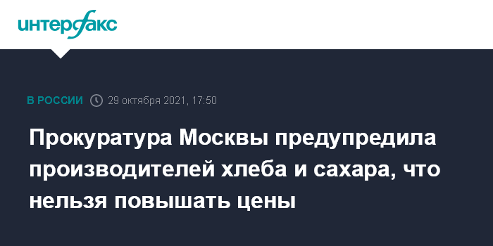 Прокуратура Москвы предупредила производителей хлеба и сахара, что нельзя повышать цены
