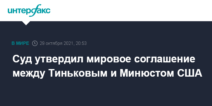 Согласно условиям мирового соглашения с Минюстом США, Тинькову должны были зачесть как отбытый тюремный срок время, проведенное под арестом в Великобритании. Предполагалось, что бизнесмен также будет находиться под надзором в течение года и заплатит штраф в $250 тыс.
