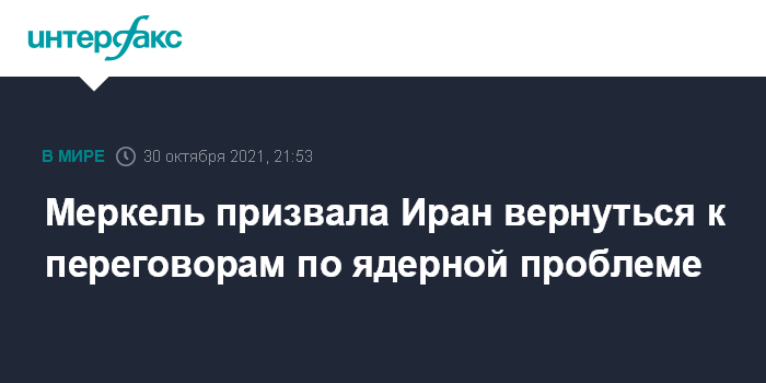Москва. 30 октября. INTERFAX.RU - Берлин считает, что Иран должен вернуться к переговорам по ядерной проблеме, заявила канцлер Германии Ангела Меркель.