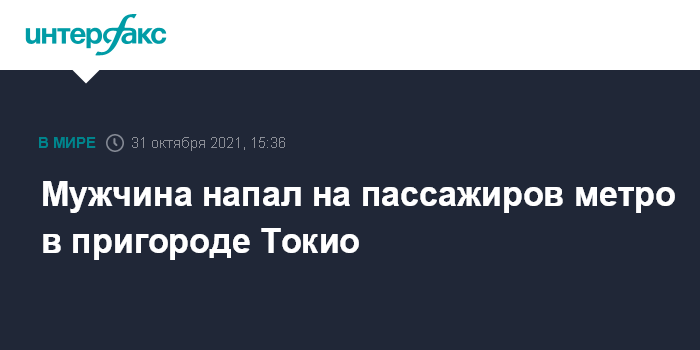Москва. 31 октября. INTERFAX.RU - Нападение с ножом на пассажиров поезда метро совершено в воскресенье в западном пригороде Токио, есть пострадавшие, некоторые - в тяжелом состоянии, сообщает японский телеканал NHK.