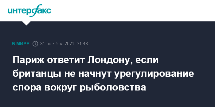 В сентябре Великобритания отказала десяткам французских судов в разрешении на рыбную ловлю, в Париже это решение вызвало недовольство. Французские власти отмечали, что это нарушает условия соглашения по выходу Великобритании из ЕС.