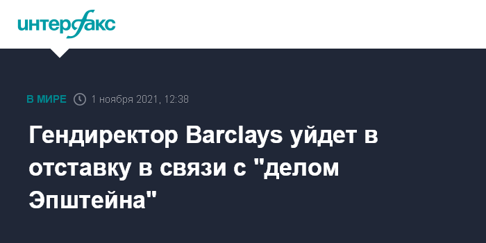 Гендиректор Barclays уйдет в отставку в связи с "делом Эпштейна"