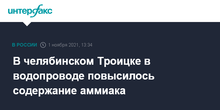 Москва. 1 ноября. INTERFAX.RU - В Челябинской области в городе Троицк на несколько часов прекратили подачу воды населению, поскольку в реке Уй выросло содержание аммиака в воде, сообщила городская администрация.