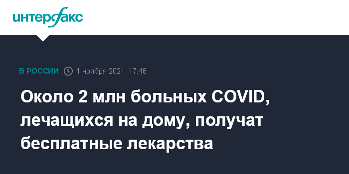 Около 2 млн больных COVID, лечащихся на дому, получат бесплатные лекарства