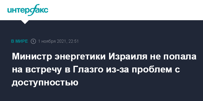 Министр энергетики Израиля не попала на встречу в Глазго из-за проблем с доступностью
