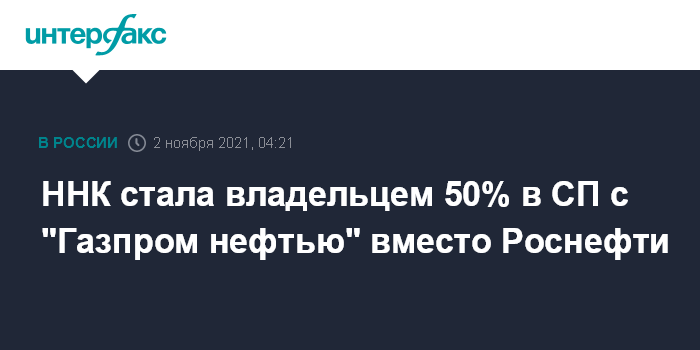 ННК стала владельцем 50% в СП с "Газпром нефтью" вместо Роснефти