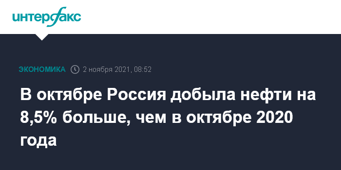 В октябре Россия добыла нефти на 8,5% больше, чем в октябре 2020 года