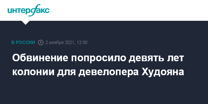 Обвинение попросило девять лет колонии для девелопера Худояна