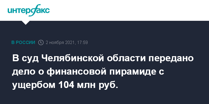 В суд Челябинской области передано дело о финансовой пирамиде с ущербом 104 млн руб.