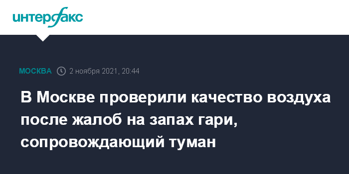 Москва. 2 ноября. INTERFAX.RU - Столичный Роспотребнадзор не обнаружил превышений вредных веществ в воздухе после жалоб граждан на запах гари, который появился одновременно с туманом в Москве, следует из сообщения ведомства.