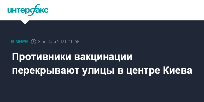Москва. 3 ноября. INTERFAX.RU - Участники акции протеста против вакцинации от коронавируса, которая проходит в среду в центре Киева, перекрывают движение автотранспорта на улице Грушевского, а также на нескольких других центральных улицах столицы вблизи правительственного квартала.