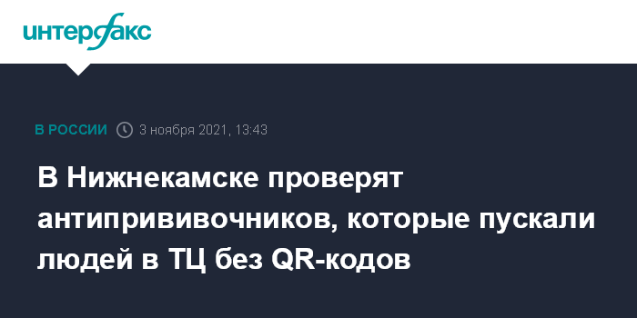Москва. 3 ноября. INTERFAX.RU - Полиция Нижнекамска (Татарстан) изучает видео, на котором группа людей призывает посетителей проходить в торговый центр без предъявления QR-кодов, сообщает пресс-служба МВД Татарстана.