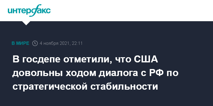 В госдепе отметили, что США довольны ходом диалога с РФ по стратегической стабильности