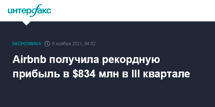 Прибыль компании в III квартале 2021 года почти в четыре раза превысила прошлогодний показатель за аналогичный период. Тогда Airbnb заработала $219 млн.