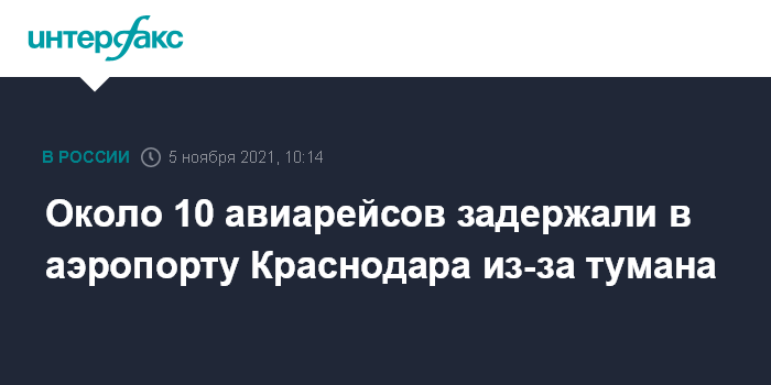 Москва. 5 ноября. INTERFAX.RU - Прилет семи рейсов задержан из-за тумана в аэропорту Краснодара, сообщили "Интерфаксу" в пресс-службе авиаузла в пятницу.