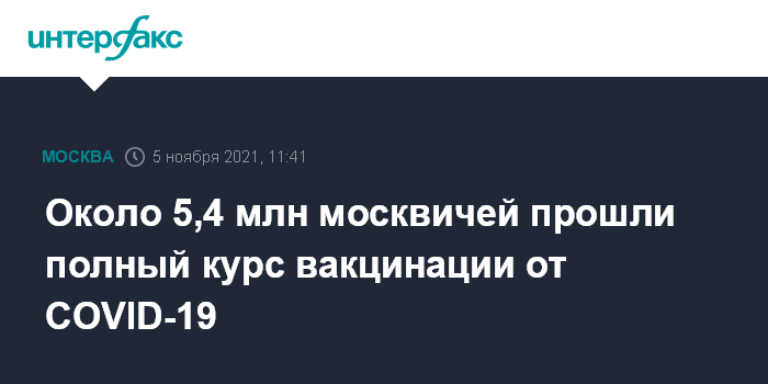 Около 5,4 млн москвичей прошли полный курс вакцинации от COVID-19