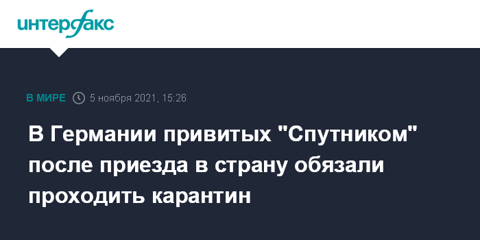 Москва. 5 ноября. INTERFAX.RU - Привитые российской вакциной "Спутник" граждане при прибытии в Германию должны проходить карантин, подтвердил представитель Минздрава ФРГ Оливер Эвальд.
