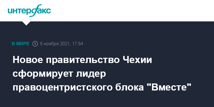 Новое правительство Чехии сформирует лидер правоцентристского блока "Вместе"