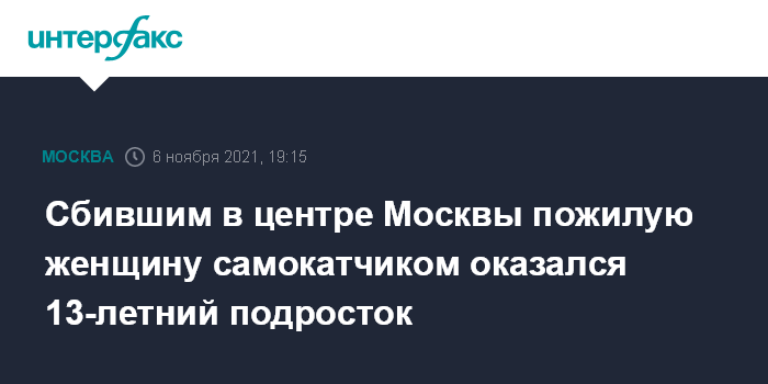 Сбившим в центре Москвы пожилую женщину самокатчиком оказался 13-летний подросток