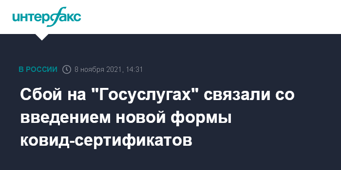 Сбой на "Госуслугах" связали со введением новой формы ковид-сертификатов