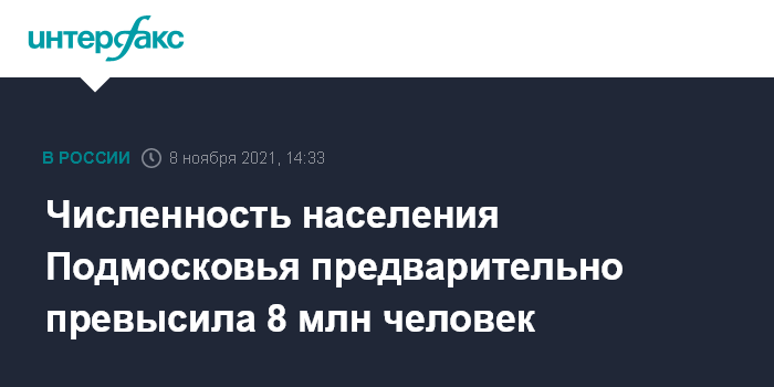 Численность населения Подмосковья предварительно превысила 8 млн человек
