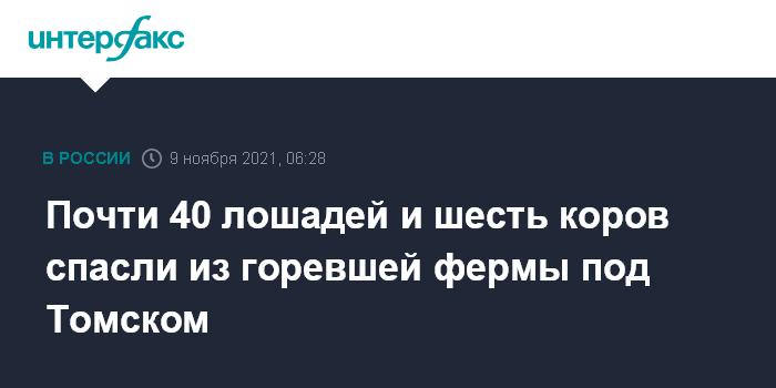 Почти 40 лошадей и шесть коров спасли из горевшей фермы под Томском