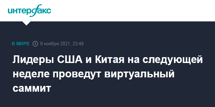 "Джо Байден и Си Цзиньпин, как планируется, проведут саммит в онлайн формате на следующей неделе", - говорится в сообщении.