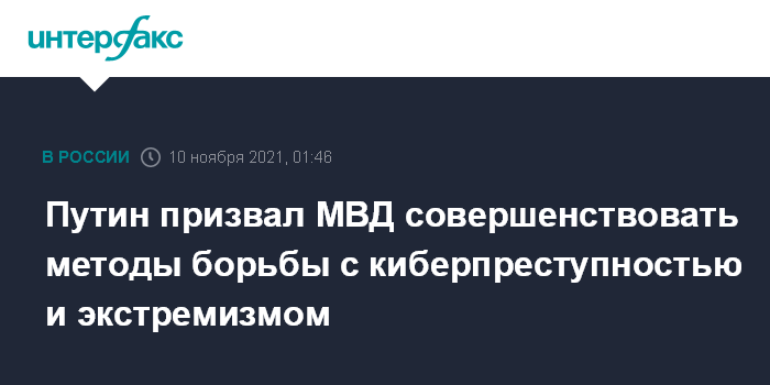 Путин призвал МВД совершенствовать методы борьбы с киберпреступностью и экстремизмом