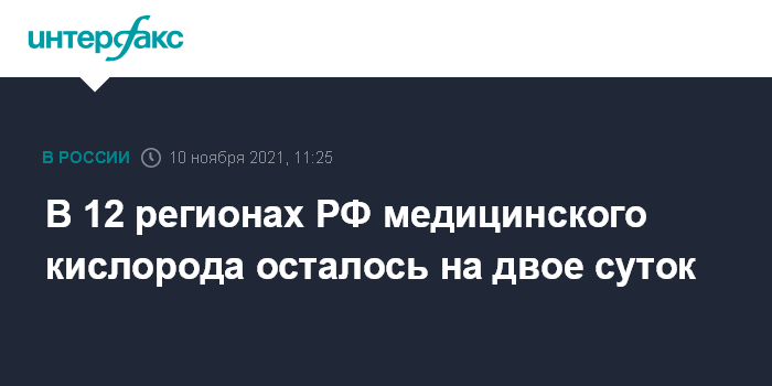 Москва. 10 ноября. INTERFAX.RU - Напряженная ситуация с медицинским кислородом сложилась в 12 российских регионах, там ведется ручной контроль его расхода. Об этом сообщил глава министерства здравоохранения РФ Михаил Мурашко.