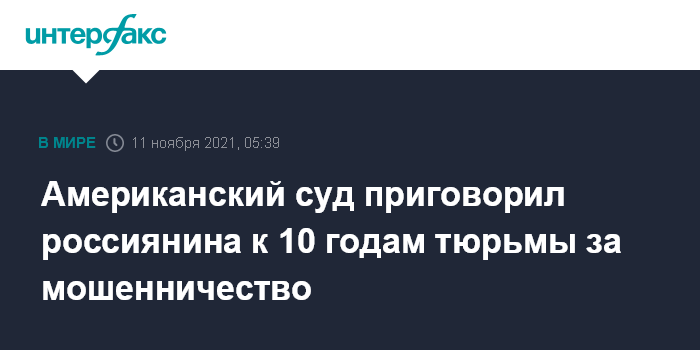 Американский суд приговорил россиянина к 10 годам тюрьмы за мошенничество