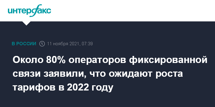 Около 80% операторов фиксированной связи заявили, что ожидают роста тарифов в 2022 году