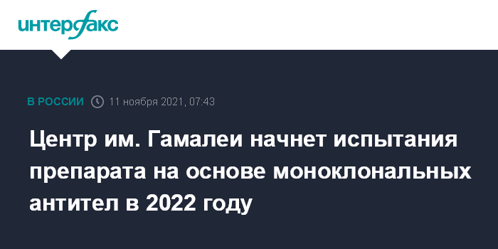 Центр им. Гамалеи начнет испытания препарата на основе моноклональных антител в 2022 году