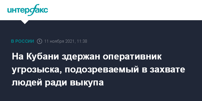 На Кубани здержан оперативник угрозыска, подозреваемый в захвате людей ради выкупа