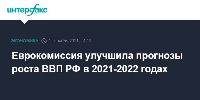 Еврокомиссия улучшила прогнозы роста ВВП РФ в 2021-2022 годах