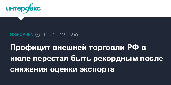 Москва. 11 ноября. INTERFAX.RU - Положительное сальдо внешней торговли РФ (определенное по методологии платежного баланса) в июле 2021 года перестало быть исторически максимальным после корректировки оценки экспорта за этот месяц, следует из обновленных данных на сайте ЦБ РФ.
