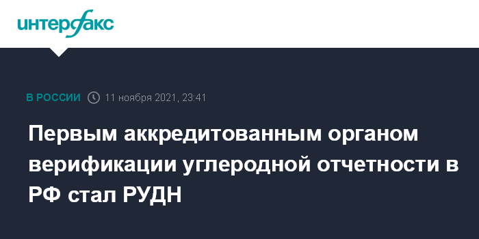 Москва. 11 ноября. INTERFAX.RU - Первый аккредитованный государством орган по валидации и верификации парниковых газов появился в РФ - им стал Российский университет дружбы народов (РУДН).