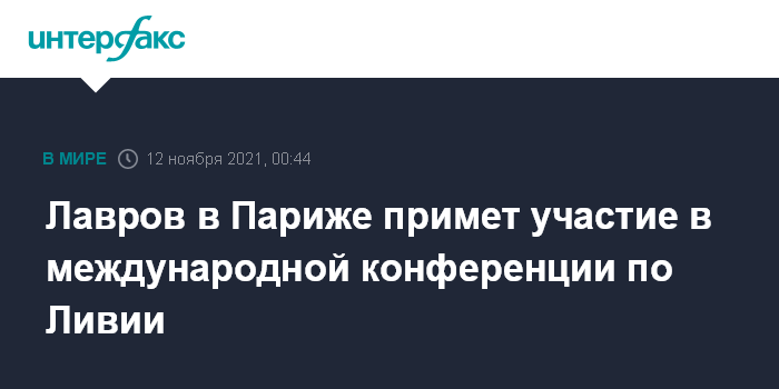 Как ранее сообщила официальный представитель МИД РФ Мария Захарова, Лавров возглавит российскую делегацию на конференции по Ливии, которая созывается по инициативе президента Франции Эммануэля Макрона.