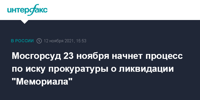 О подаче иска прокуратуры в Мосгорсуд стало известно накануне. Аналогичное заявление о ликвидации международного общества "Мемориал" (признано НКО-иноагентом) Генпрокуратура направила в Верховный суд России, который проведет предварительное заседание по делу 25 ноября.