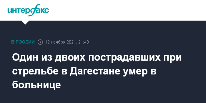 Москва. 12 ноября. INTERFAX.RU - Врачи несколько часов боролись за жизнь одного из пострадавших при стрельбе в Акушинском районе Дагестана, но не смогли его спасти, сообщили в пресс-службе регионального Минздрава республики.