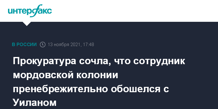 Прокуратура сочла, что сотрудник мордовской колонии пренебрежительно обошелся с Уиланом