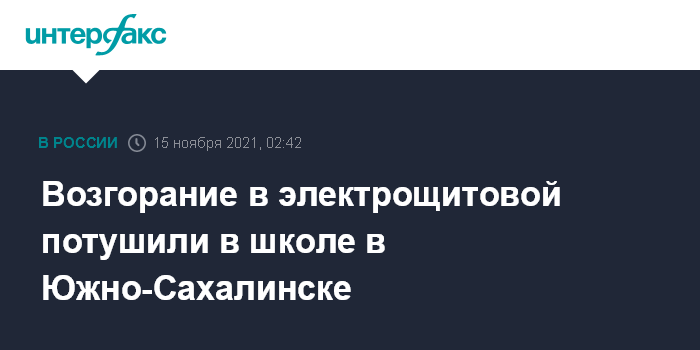Москва. 15 ноября. INTERFAX.RU - Учащиеся лицея №1 в Южно-Сахалинске отправлены в понедельник на дистанционное обучение из-за возгорания в электрощитовой, сообщает пресс-служба мэрии областного центра на своей странице в телеграм-канале.