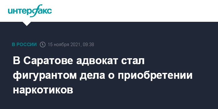Москва. 15 ноября. INTERFAX.RU - В Саратове задержан 34-летний адвокат областной Адвокатской палаты, он стал фигурантом уголовного дела о приобретении и хранении наркотиков в крупном объеме (ч.2 ст. 228 УК), сообщили в областном управлении СК, не назвав его имя.