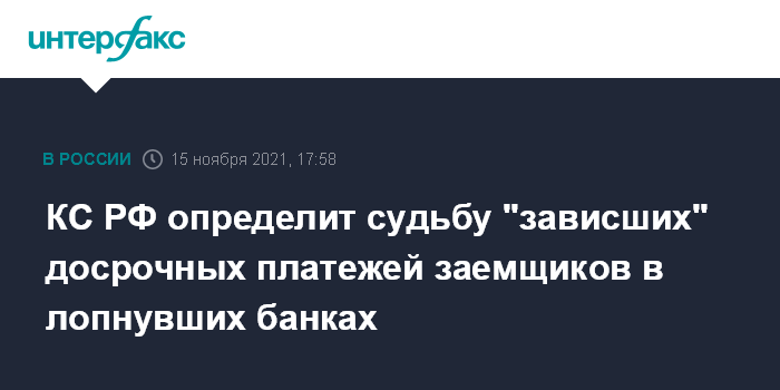 КС РФ определит судьбу "зависших" досрочных платежей заемщиков в лопнувших банках