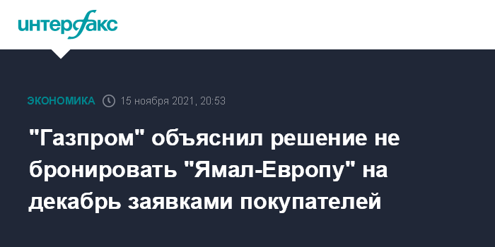 "Газпром" объяснил решение не бронировать "Ямал-Европу" на декабрь заявками покупателей