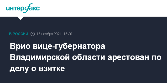 Врио вице-губернатора Владимирской области арестован по делу о взятке