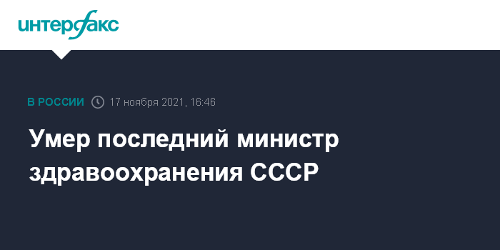 Москва. 17 ноября. INTERFAX.RU - Умер последний руководитель Минздрава СССР, профессор, академик РАМН Игорь Денисов, сообщили пресс-службе российского Минздрава.