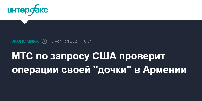 МТС по запросу США проверит операции своей "дочки" в Армении