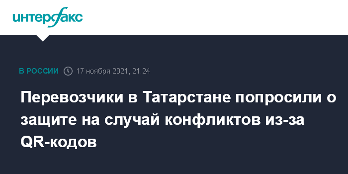 Москва. 17 ноября. INTERFAX.RU - Перевозчики Татарстана направили обращение министру внутренних дел республики Артему Хохорину с просьбой оказать поддержку при возникновении конфликтных ситуаций с пассажирами из-за введения QR-кодов в общественном транспорте. Об этом сообщил "Интерфаксу" председатель ассоциации автотранспортных предприятий региона Сергей Темляков.